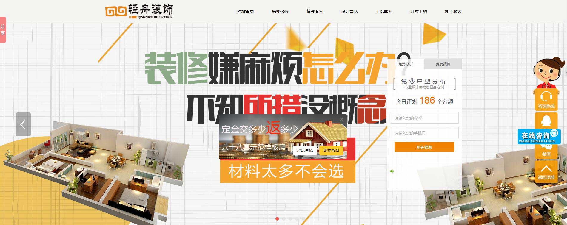 使用產(chǎn)品:裝企營銷系統(tǒng)鉆石版+手機版首頁定制+售后服務+技術(shù)支持+域名申請解析+網(wǎng)絡運營與優(yōu)化指導