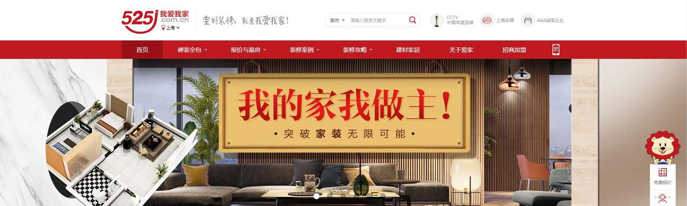 我愛我家互聯網家裝網站首頁大圖效果