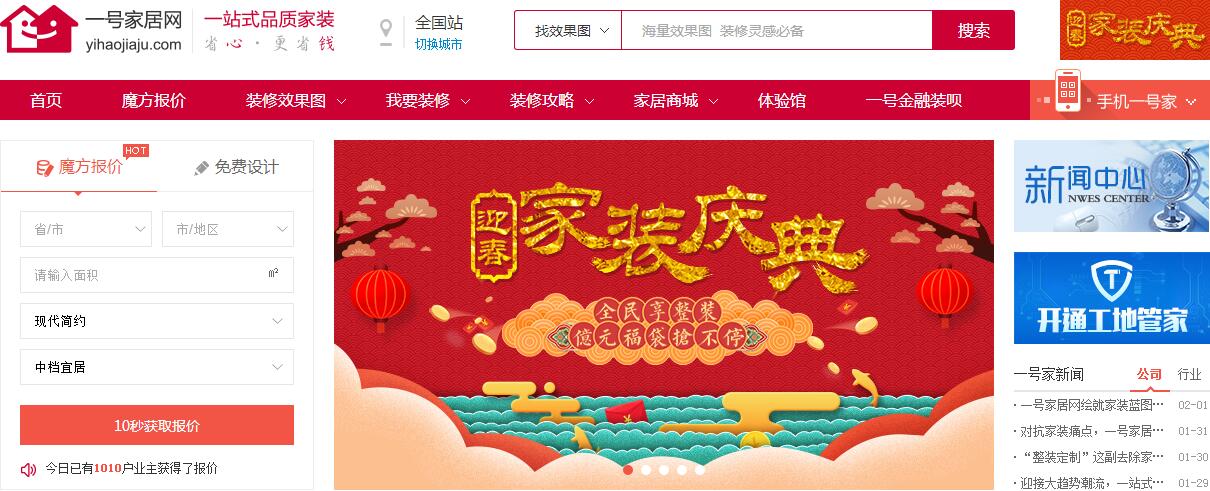 一號(hào)家居網(wǎng)互聯(lián)網(wǎng)家裝網(wǎng)站首頁效果展示