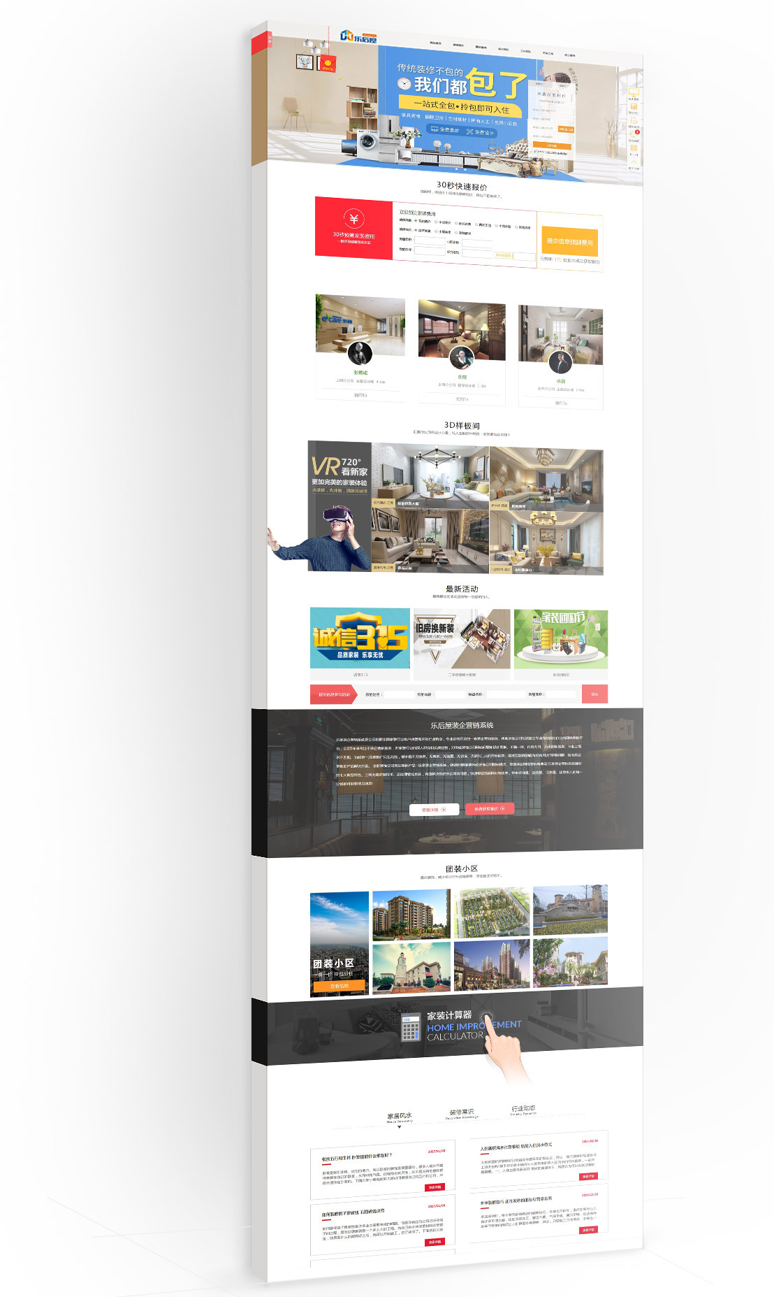 通過專業(yè)策劃、設(shè)計,將裝修報價器、大轉(zhuǎn)盤、抽紅包、優(yōu)惠券等17個營銷元素,根據(jù)業(yè)主需要巧妙安排在網(wǎng)站不同視覺內(nèi),滿足和引導(dǎo)業(yè)主多樣化需求。
